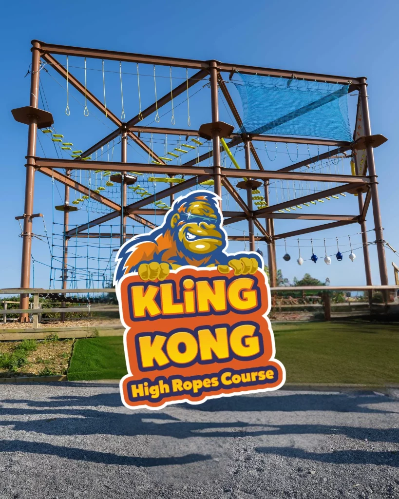 Climb, balance and swing your way through our two-level aerial course built for adventurers aged 8 and up. Kling Kong stands 5 metres tall on a solid steel frame, making it as safe as it is thrilling.